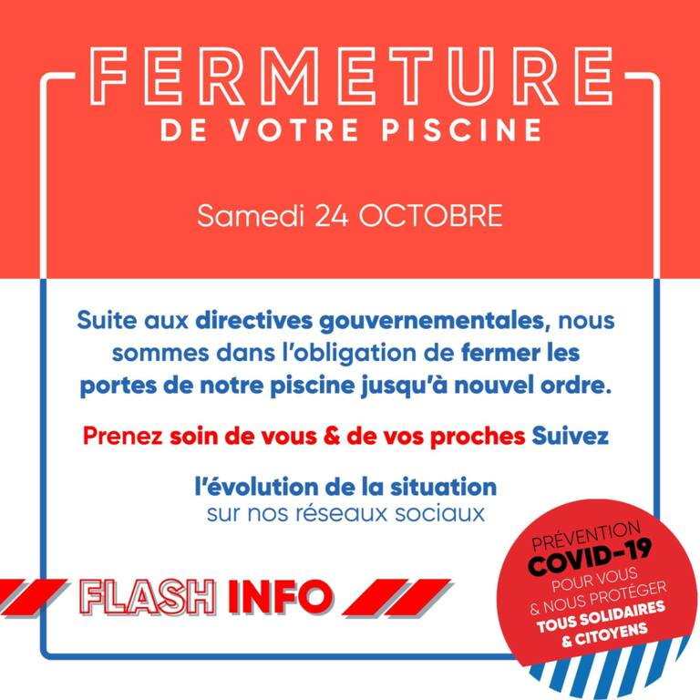 Je vous informe que suite aux dernières annonces gouvernementales le Parc Aquatique Naturéo a fermé ses portes pour une durée indéterminée.